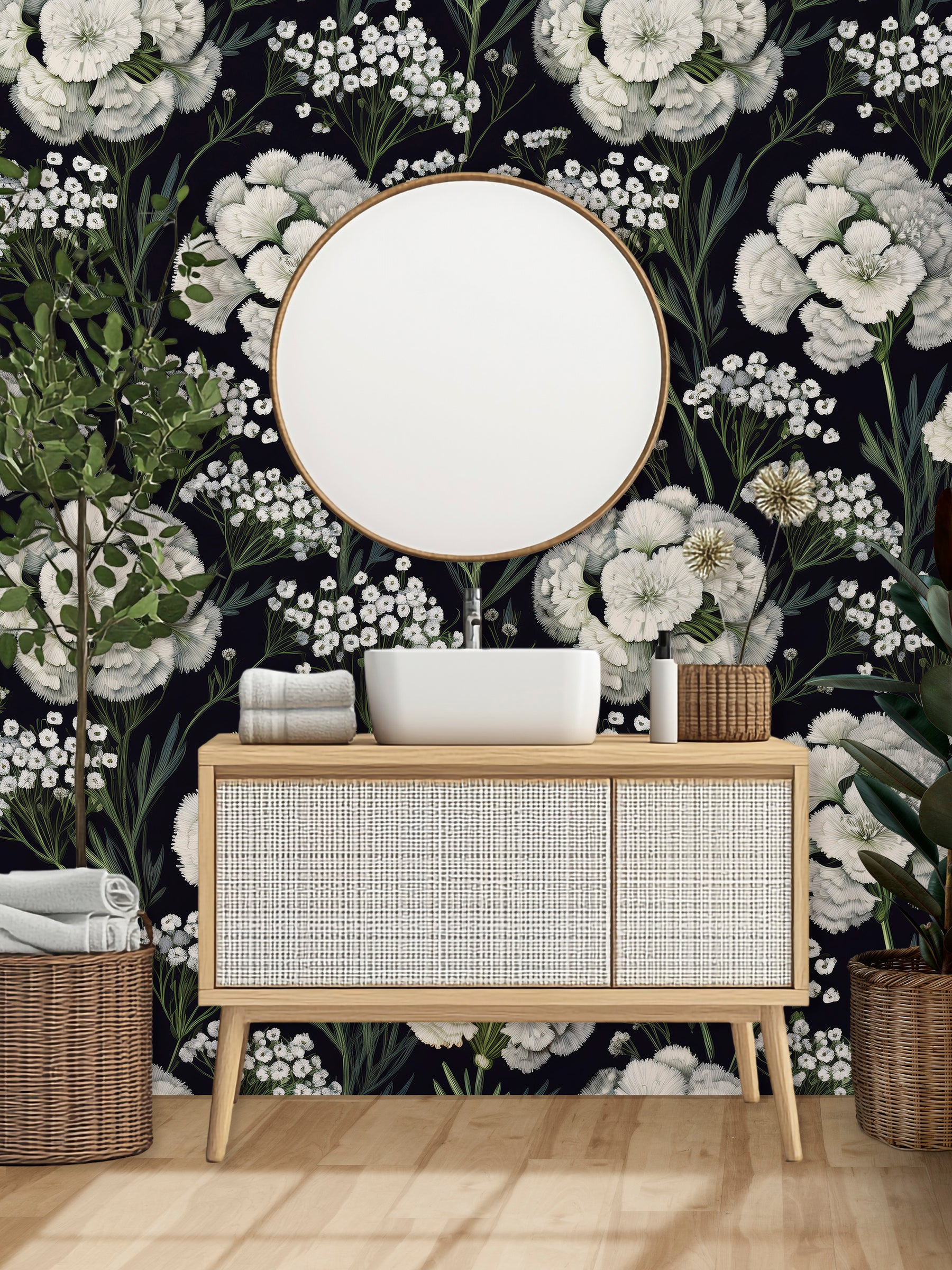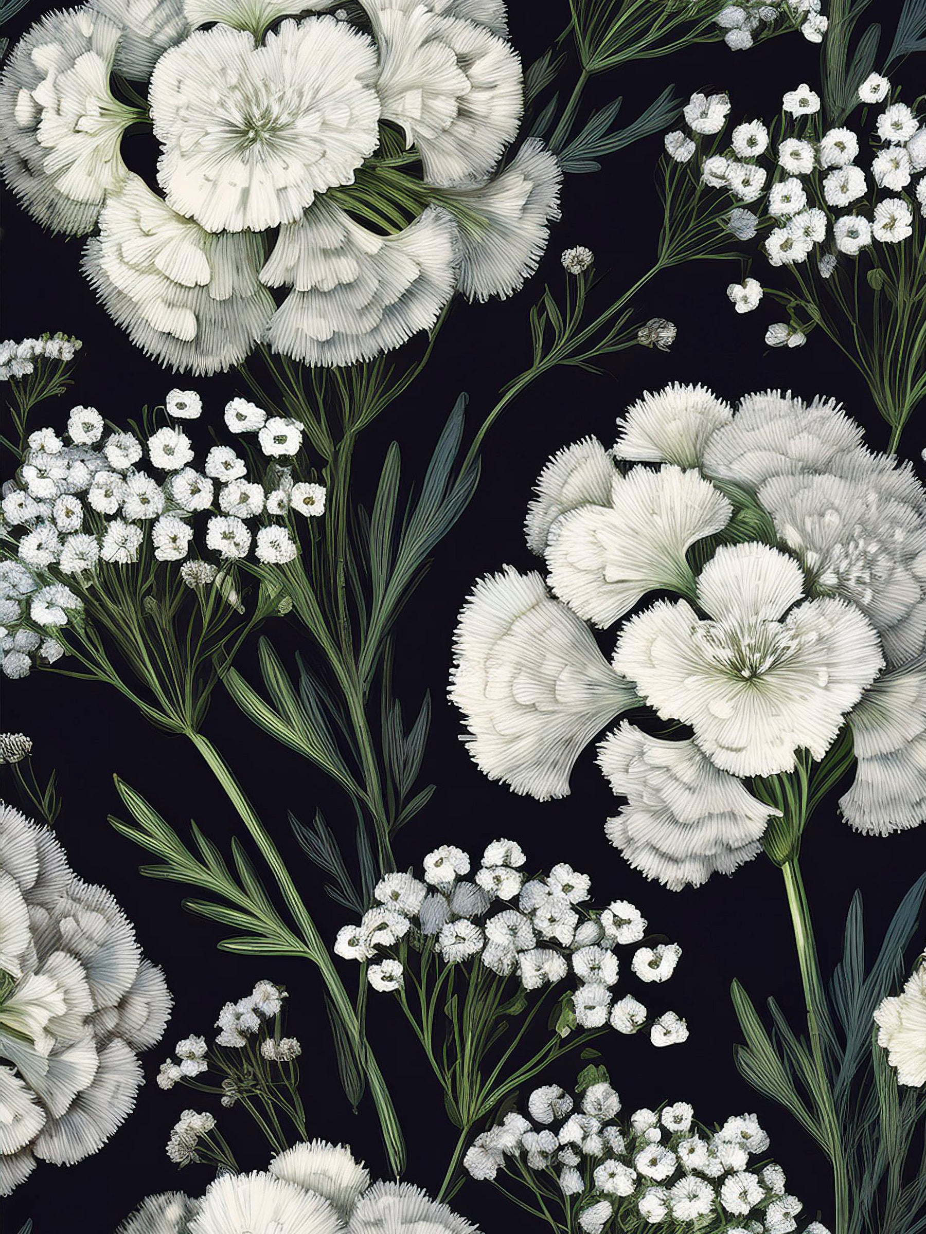 Whispers of moonlight and shadows dance across the walls with Seraphina. This pattern evokes the hush of midnight confessions, the elegance of candlelit parlors, and the passion of a love letter sealed with wax. Soft blooms unfurl like secrets meant only for two, their pale glow set against a dark backdrop of intrigue. For those who crave romance stitched into their space, Seraphina is not just a wallpaper—it’s a story unfolding, one gaze at a time.